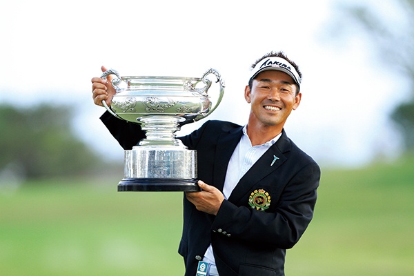 優勝カップを掲げる裴相文(JGAホームページより転載)